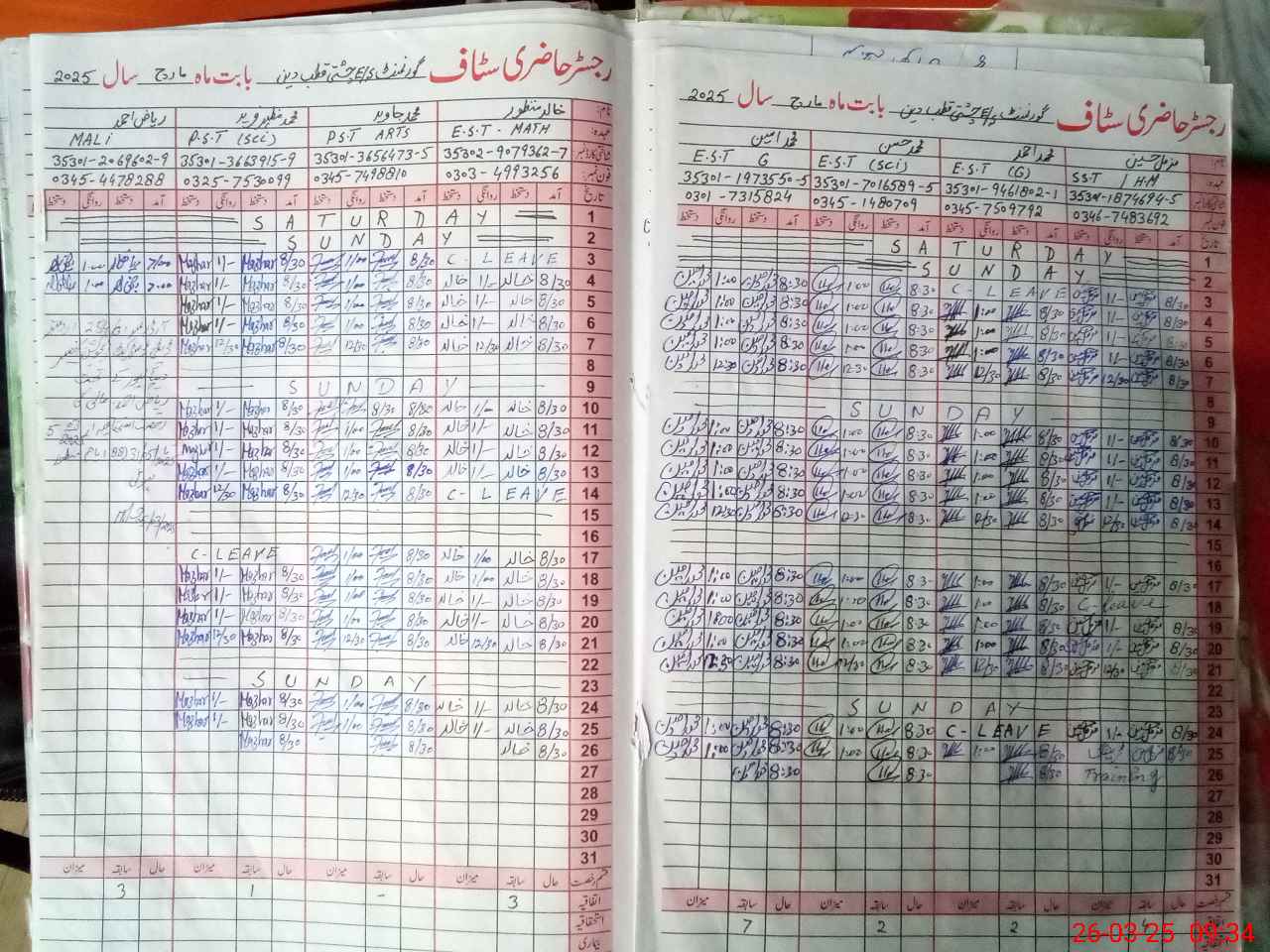 | CNIC | Full Name | Designation | R/C | Absence During Last Calender Month |
