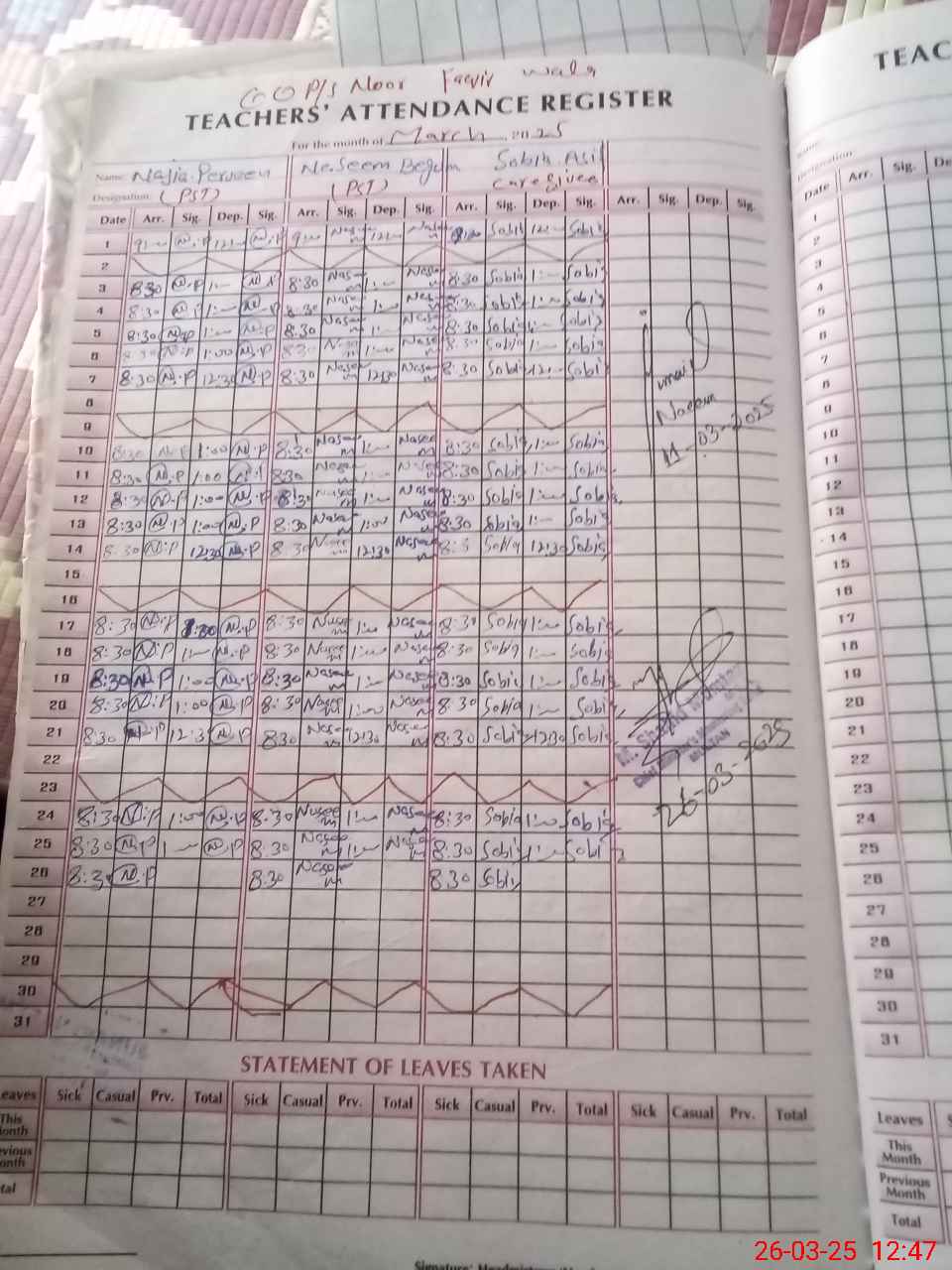 | Attendance Register | Head Teacher | MEA with School | Visit Proof |