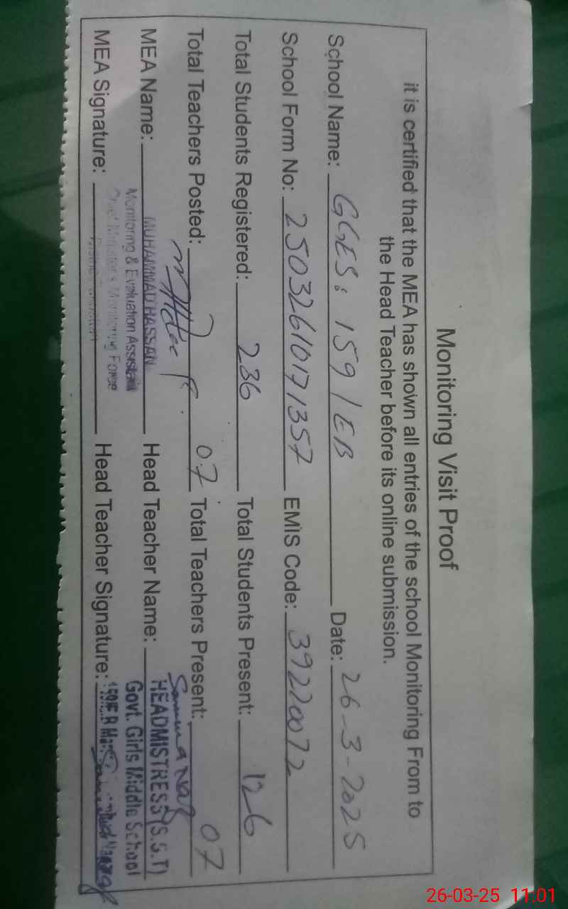 | Certified that this School was Inspected by the Undersigned MEA/DMO Today and the Information Stated Above is as Per Record. | |||||