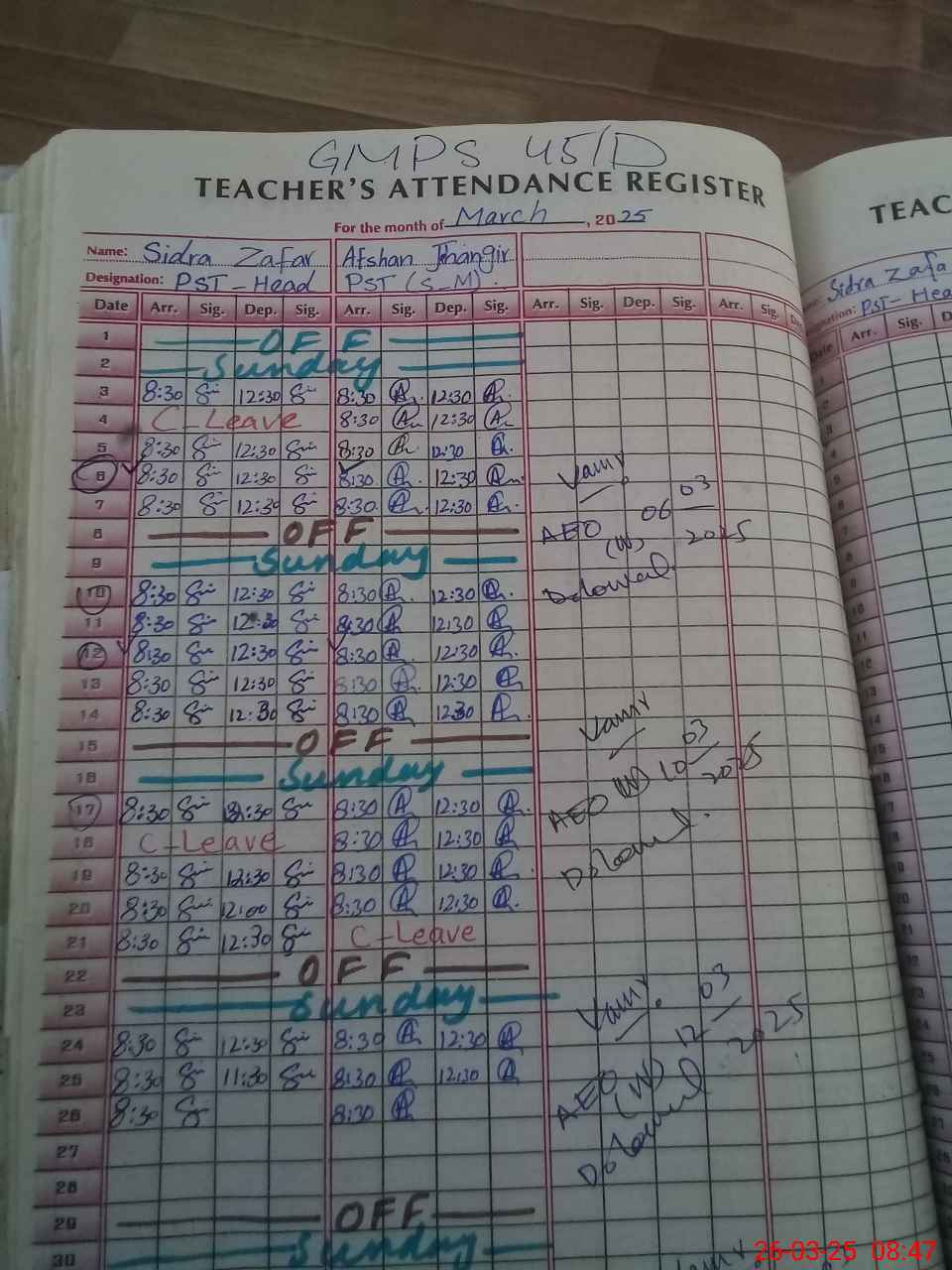 | Name: Si**** Za**** Designation: (School Headmaster's/Headmistress's) PST Phone/Cell Number: 03**** |