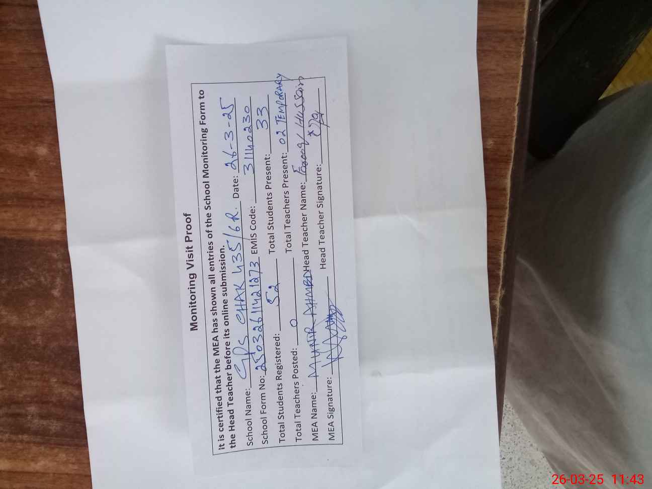 | EMIS Code: 31140230 | Name of School: GPS CHAK NO 435/6-R | |||