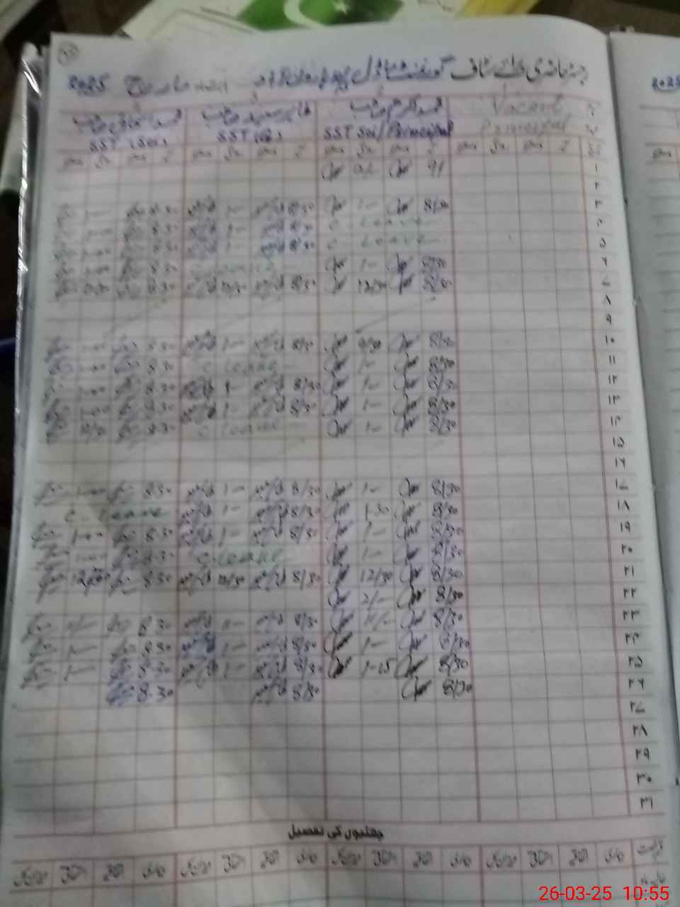| 31**** | As**** Al**** De**** | SST | Regular | 0 | 0 | 0 | 0 | 0 | 0 | 0 | 0 | 0 | Exam Duty |