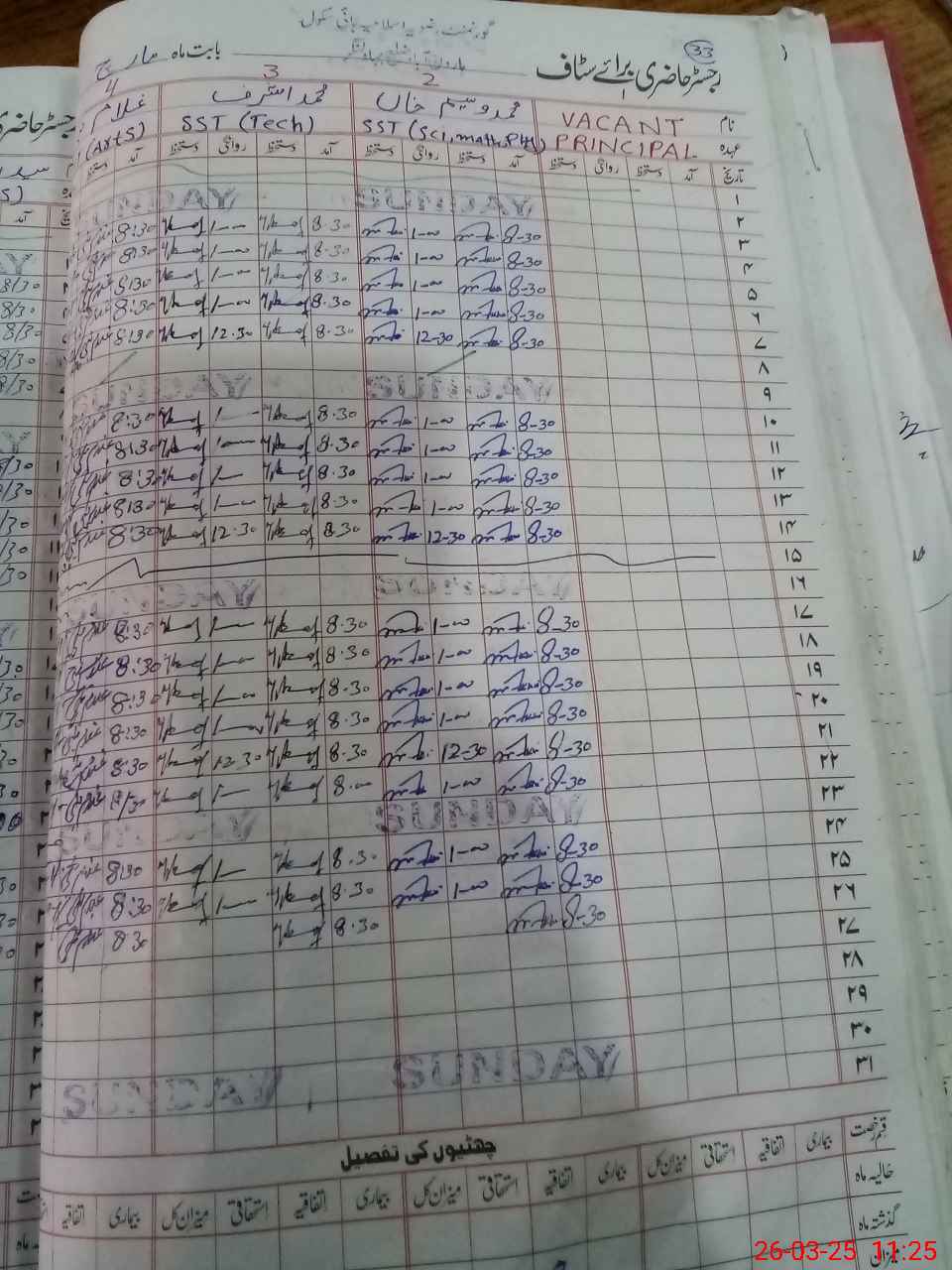 | 31**** | As**** Ul**** Kh**** | SSE | Contract | 0 | 0 | 0 | 0 | 0 | 0 | 0 | 0 | 0 | Exam Duty |