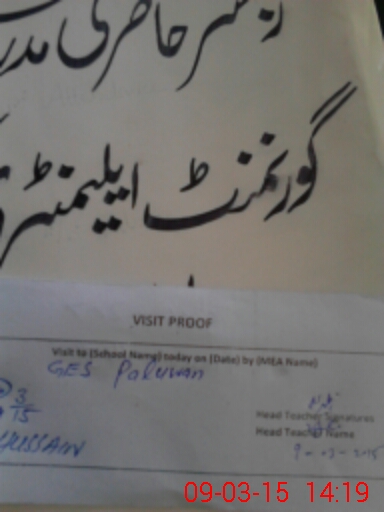 | Attendance Register | Head Teacher | MEA with School | Visit Proof |