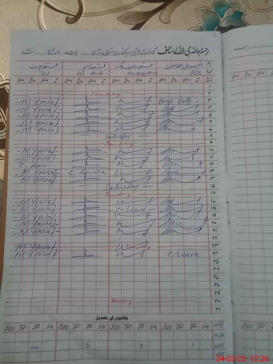 | Leave | Duty | Absent | Maternity | Medical | Ex- Pak |