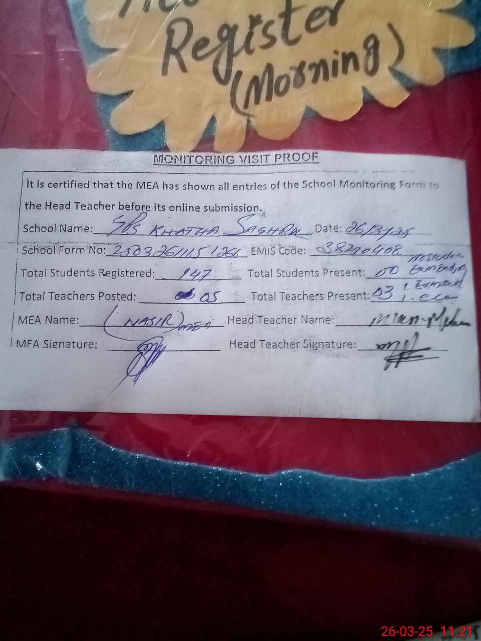 | EMIS Code: 38210408 | Name of School: GPS KATHA SAGHRAL | |||