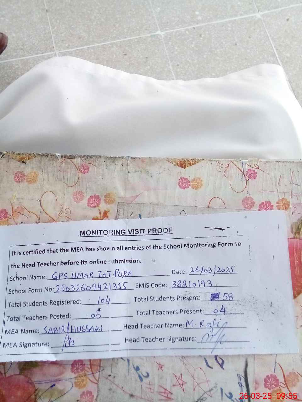 | EMIS Code: 38210193 | Name of School: GPS UMER TAJPURA KHUSHAB | |||
