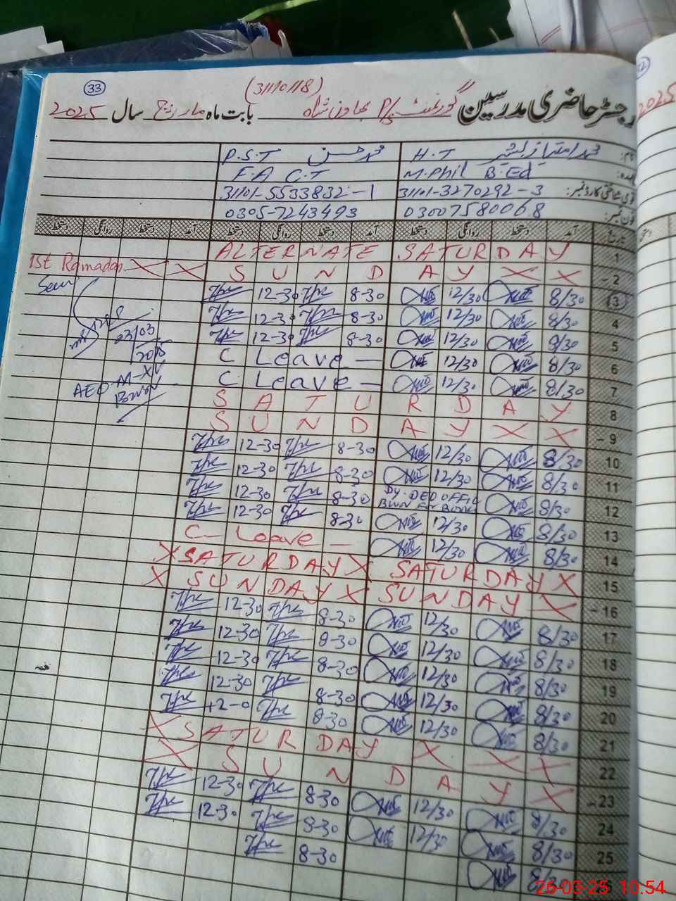 | Leave | Duty | Absent | Maternity | Medical | Ex- Pak |