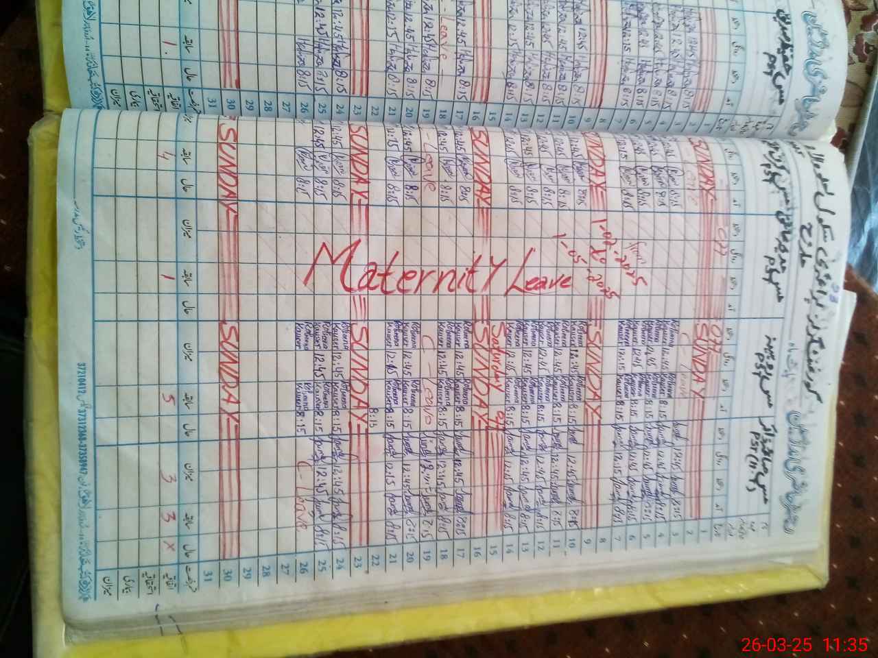 | Leave | Duty | Absent | Maternity | Medical | Ex- Pak |