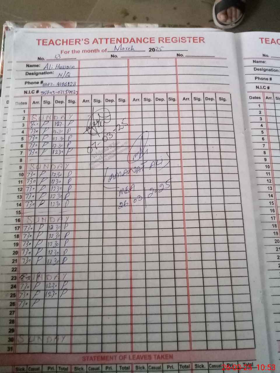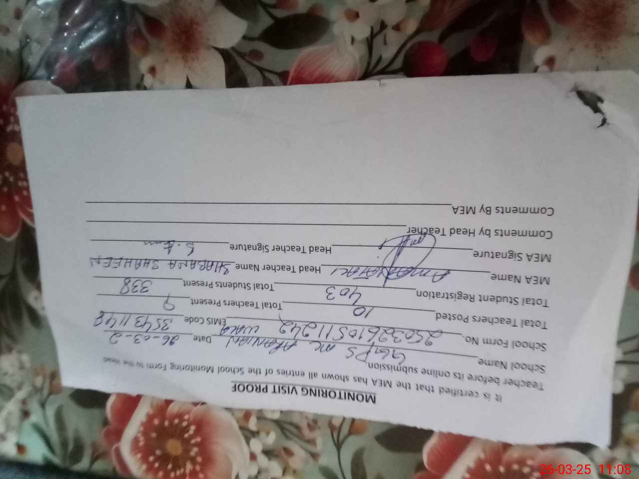 | Name: SH**** SH**** Designation: (School Headmaster's/Headmistress's) PST Phone/Cell Number: 03**** |
