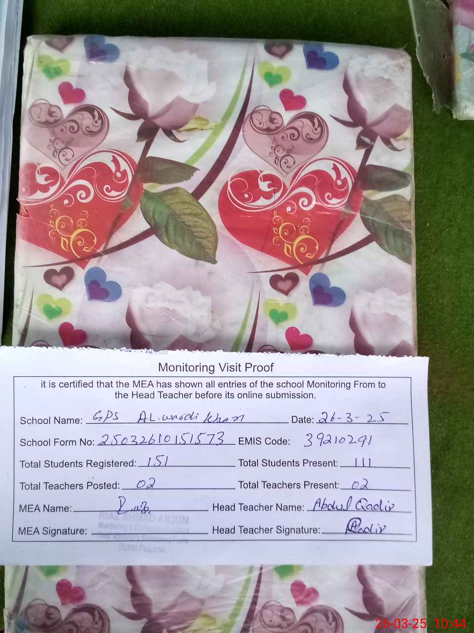 | EMIS Code: 39210291 | Name of School: GPS ALWARDI KHAN | |||