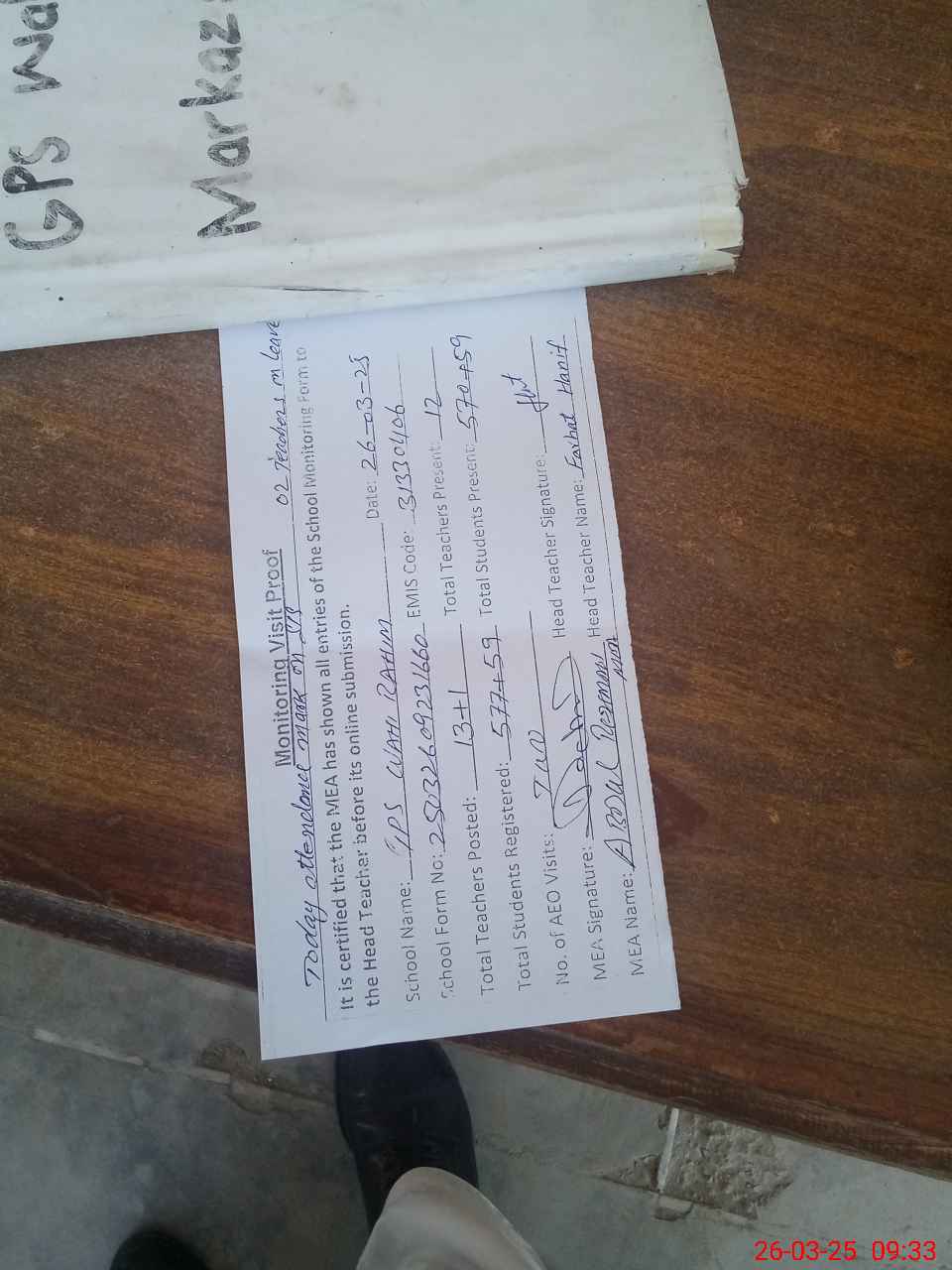 | EMIS Code: 31330406 | Name of School: GPS WAHI RAHIM | |||