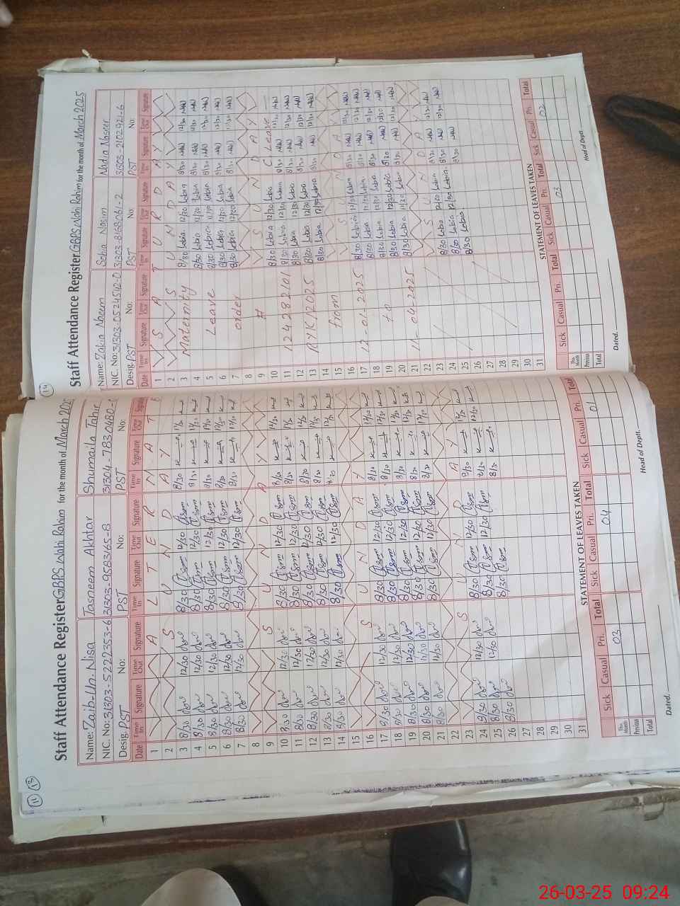 | 31**** | Mu**** Fa**** Ak**** | PST | Regular | 0 | 0 | 0 | 0 | 0 | 0 | 0 | 0 | 0 | Exam Duty |