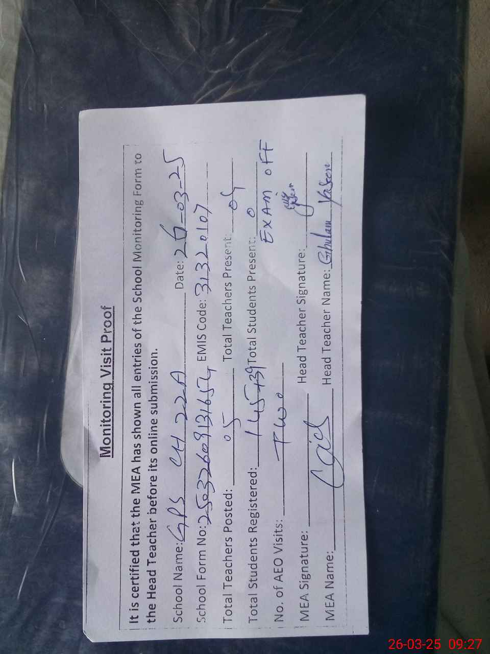| Name: AS**** RA**** Designation: (School Headmaster's/Headmistress's) PST Phone/Cell Number: 03**** |