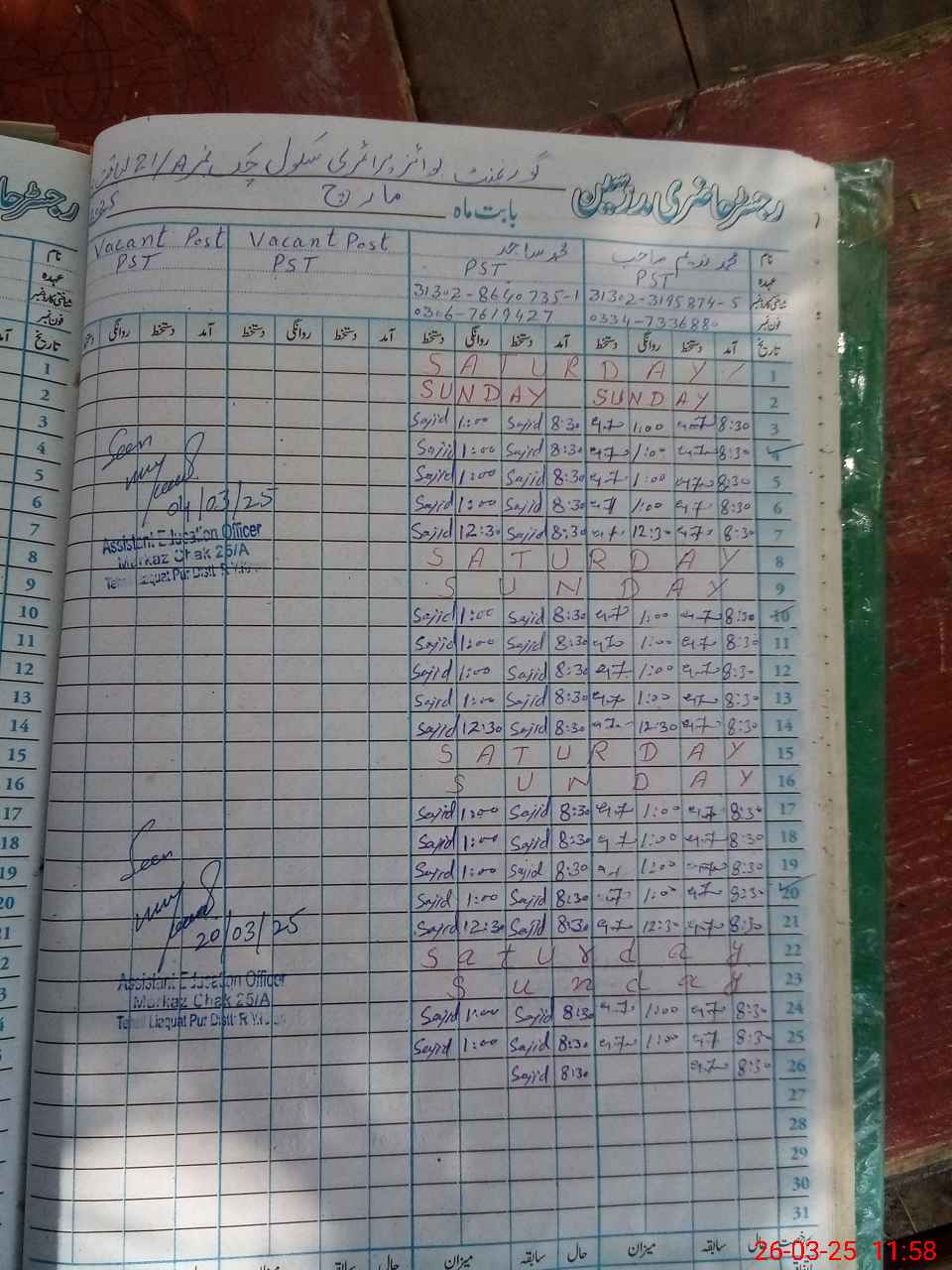 | Name: MU**** NA**** Designation: (School Headmaster's/Headmistress's) PST Phone/Cell Number: 03**** |