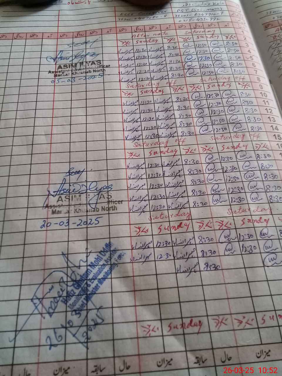 | District: KHUSHAB | Tehsil: KHUSHAB | Markaz: KHUSHAB (NORTH) (MALE) | Level: Primary | |