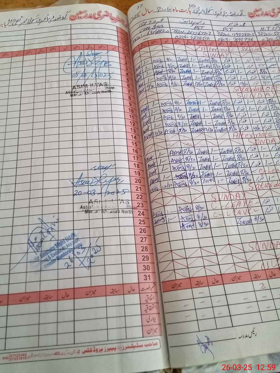 | Name: Mu**** Sa**** Designation: (School Headmaster's/Headmistress's) PST Phone/Cell Number: 03**** |