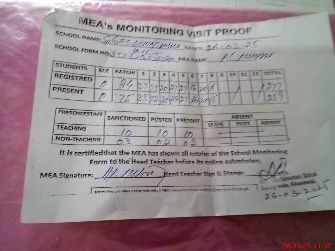 | EMIS Code: 36420105 | Name of School: GGES DENAY WALA, KHANEWAL | |||