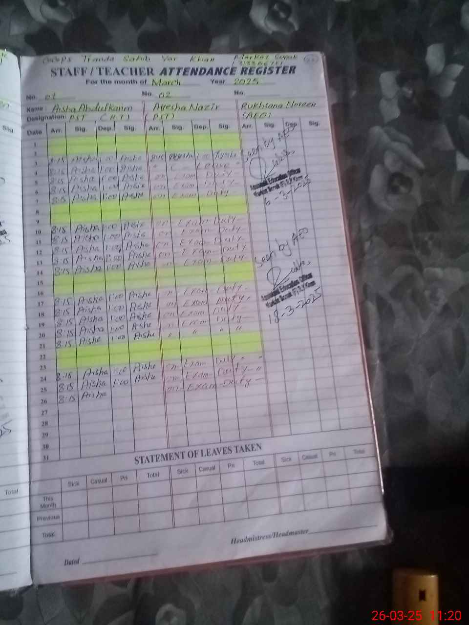 | 31**** | Ay**** Na**** | 1 | 1 | 0 | 0 | 0 | 0 | 0 | 0 | 0 | 0 | 0 | Exam Duty |