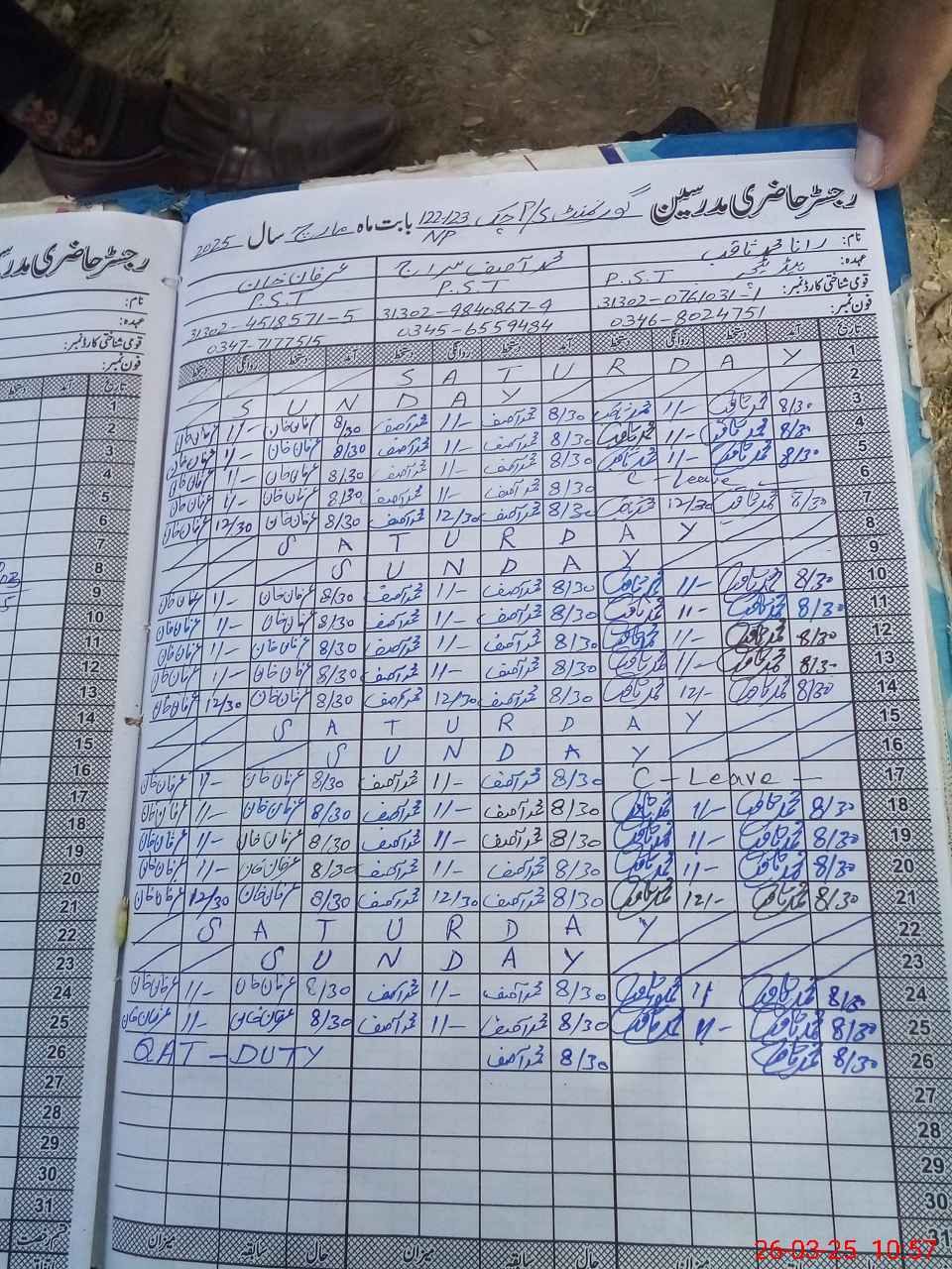 | Leave | Duty | Absent | Maternity | Medical | Ex- Pak |