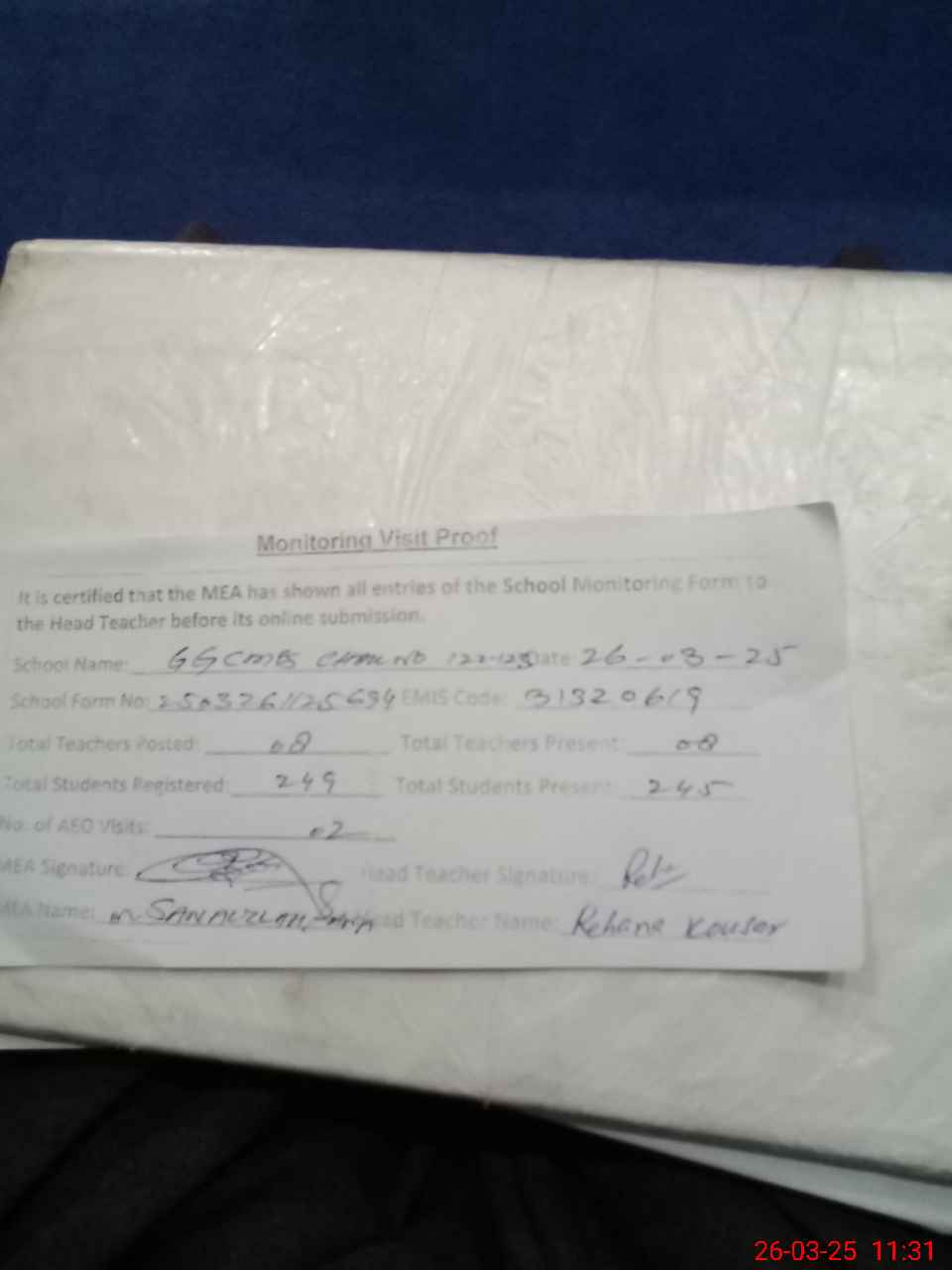 | EMIS Code: 31320619 | Name of School: GGCMES CHAK 122-123/NP | |||