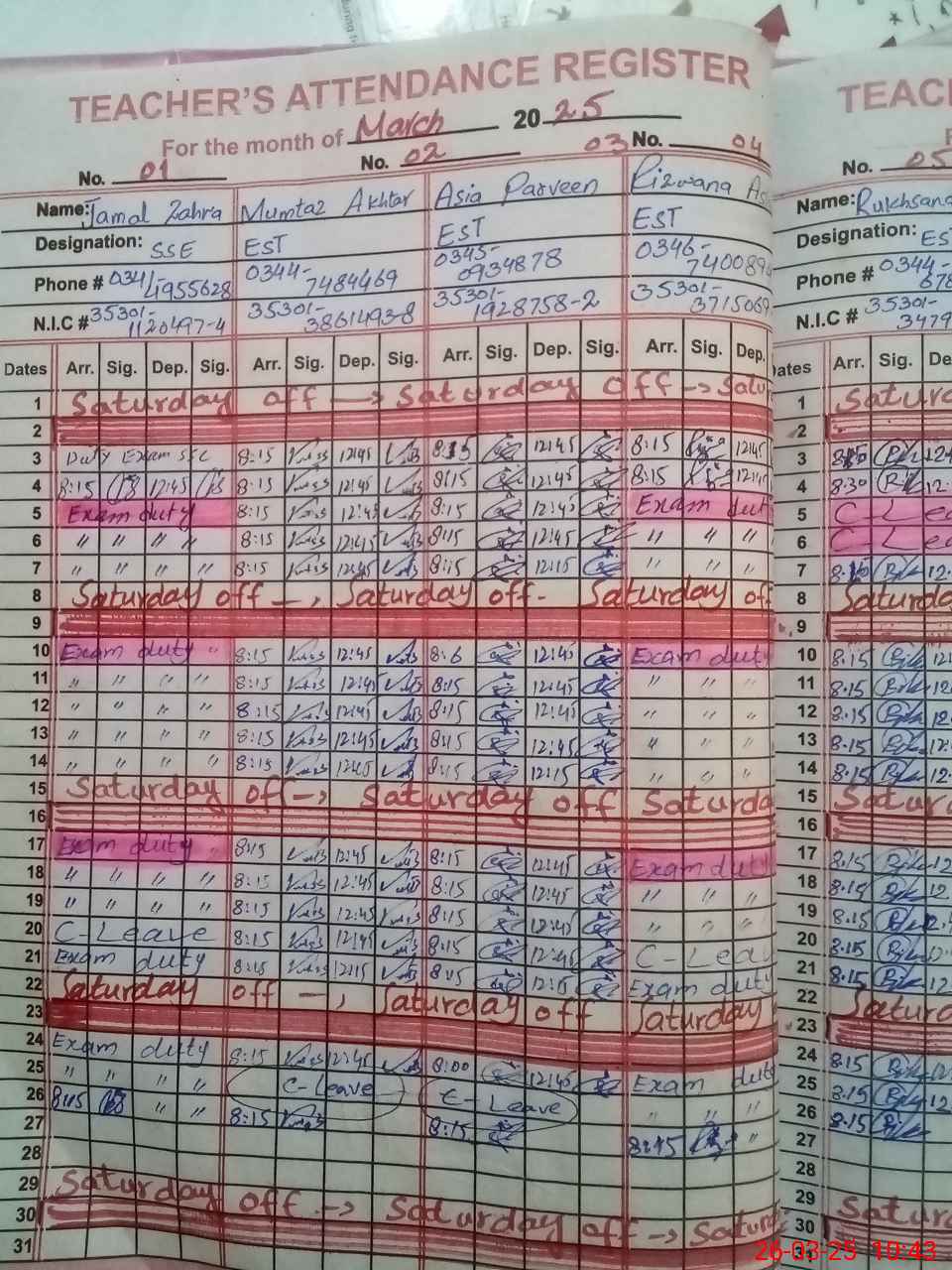 | CNIC | Full Name | Designation | R/C | Absence During Last Calender Month |