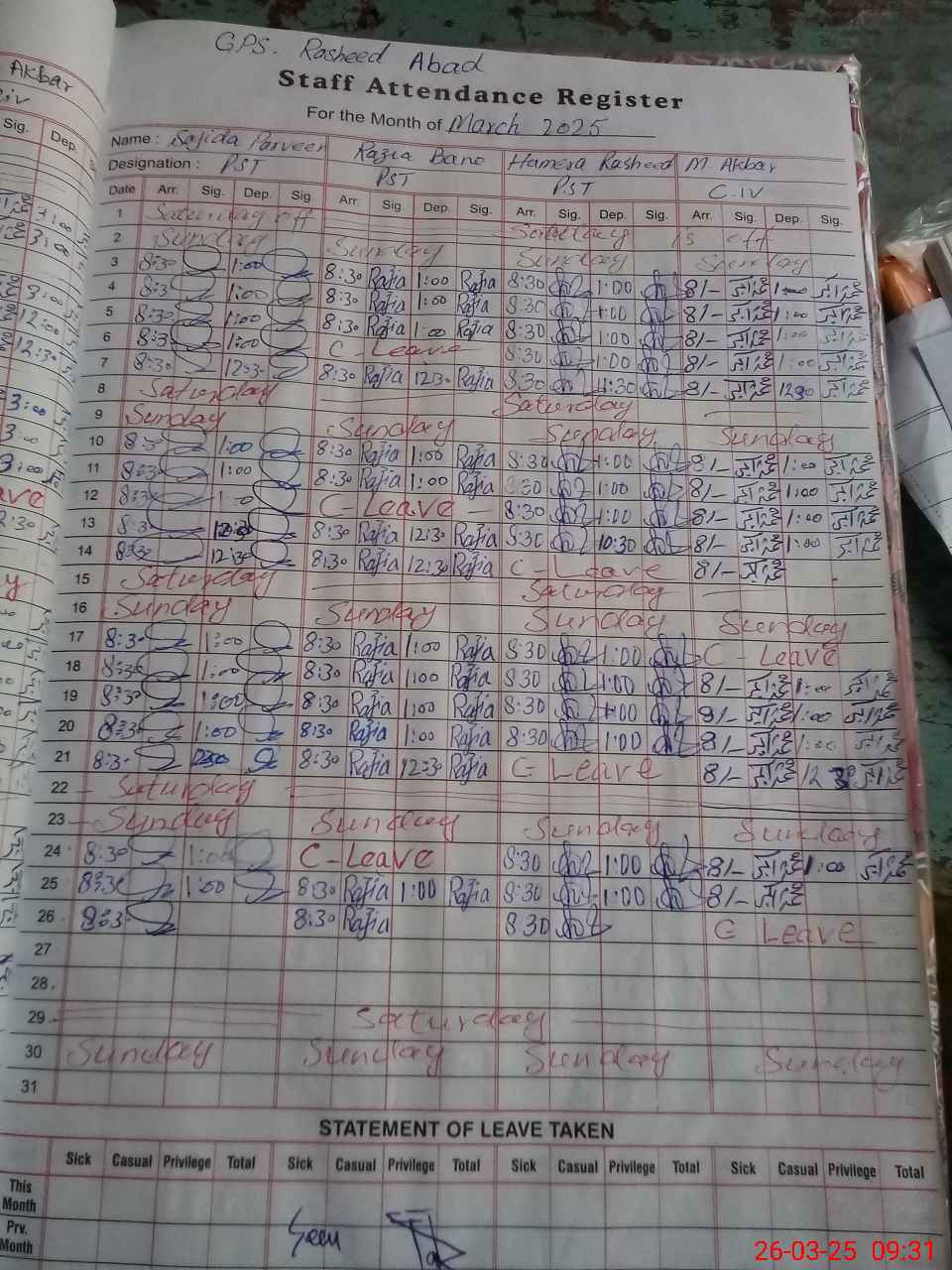 | EMIS Code: 31320803 | Name of School: GPS RASHID ABAD | |||