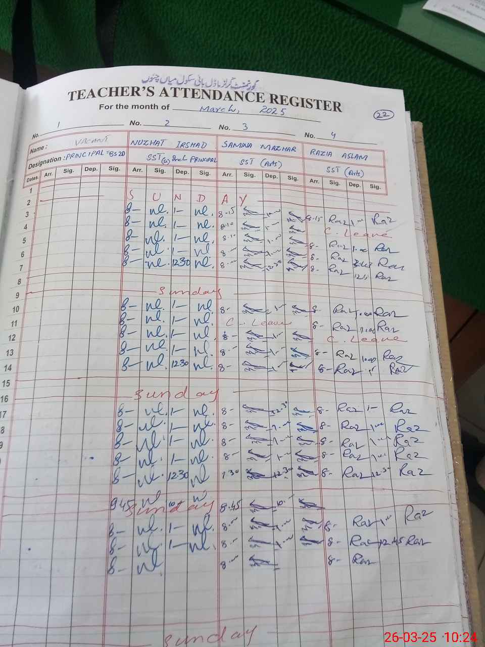 | Name: Nu**** Ir**** Designation: (School Headmaster's/Headmistress's) Incharge Head Phone/Cell Number: 03**** |