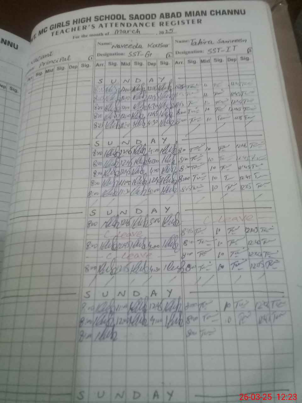 | CNIC | Full Name | Designation | R/C | Absence During Last Calender Month |