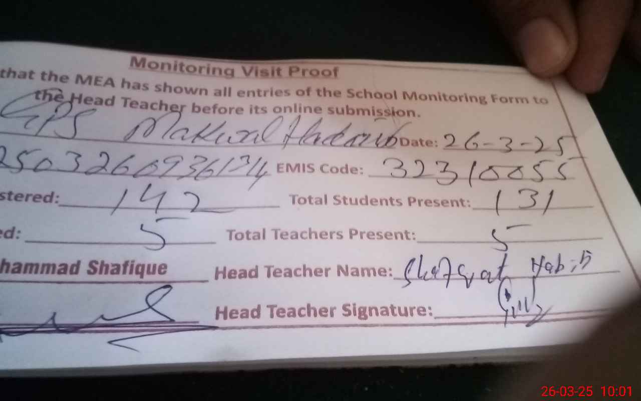 | EMIS Code: 32310055 | Name of School: GPS MAKWAL HADEER | |||
