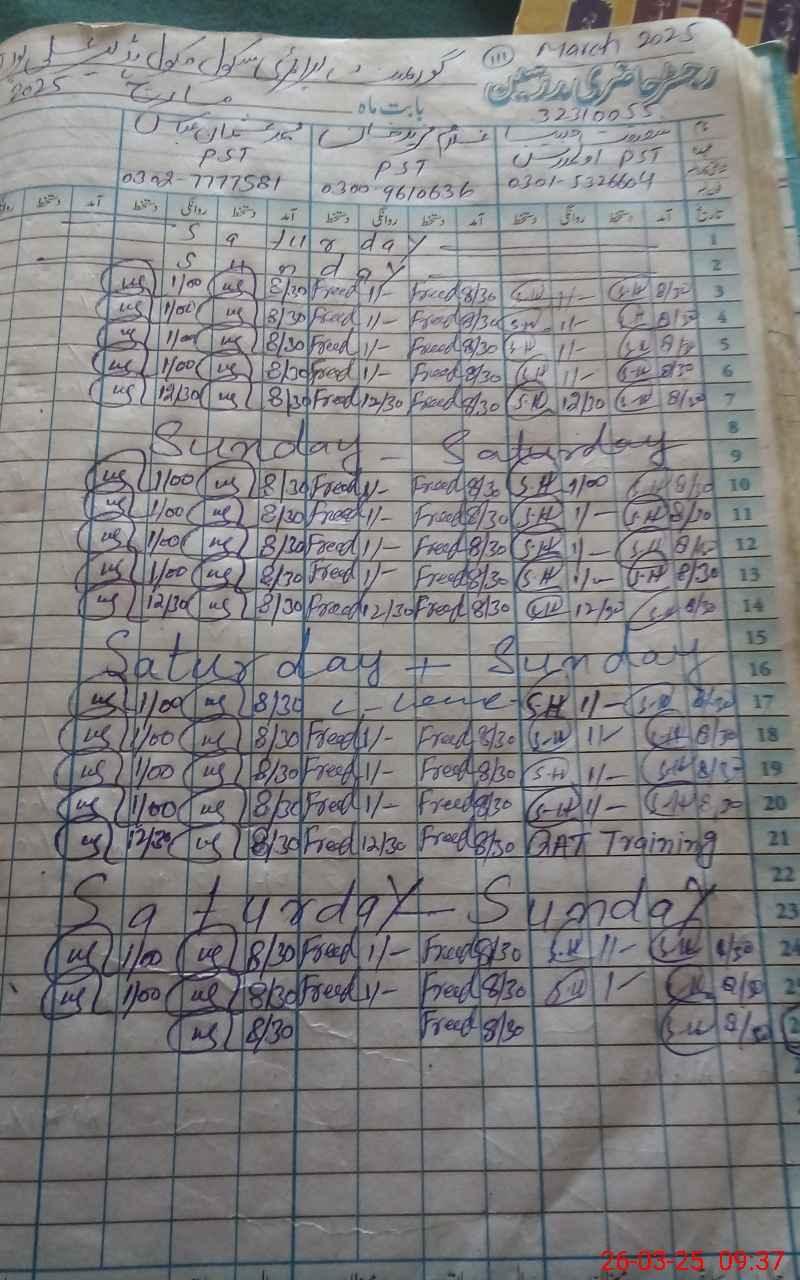 | Name: Sh**** Ha**** Designation: (School Headmaster's/Headmistress's) PST Phone/Cell Number: 03**** |