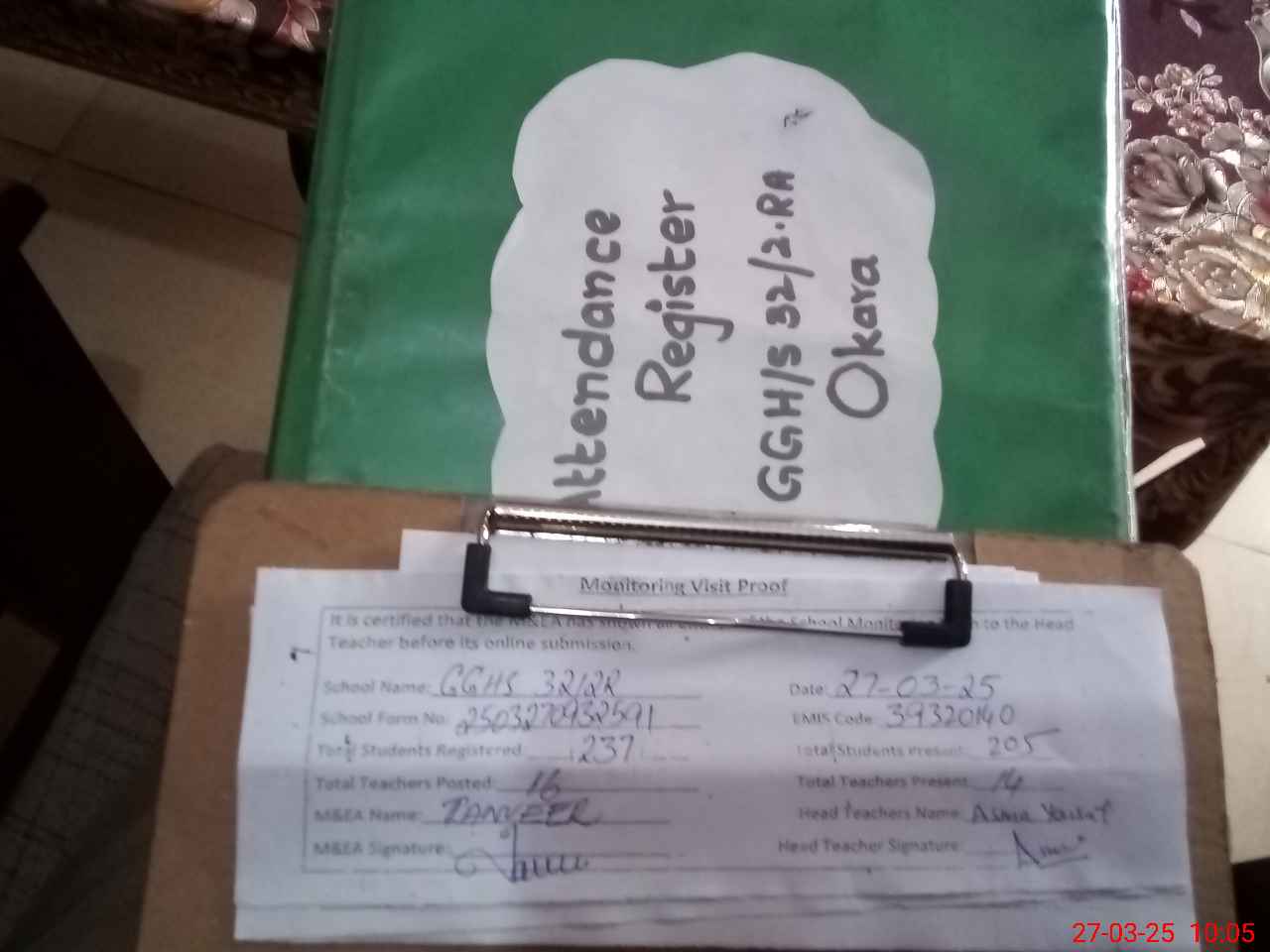 | EMIS Code: 39320140 | Name of School: GGHS 32/2-R OKARA | |||