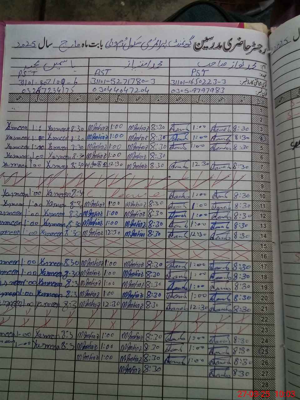 | Name: MU**** NA**** Designation: (School Headmaster's/Headmistress's) PTC Phone/Cell Number: 03**** |