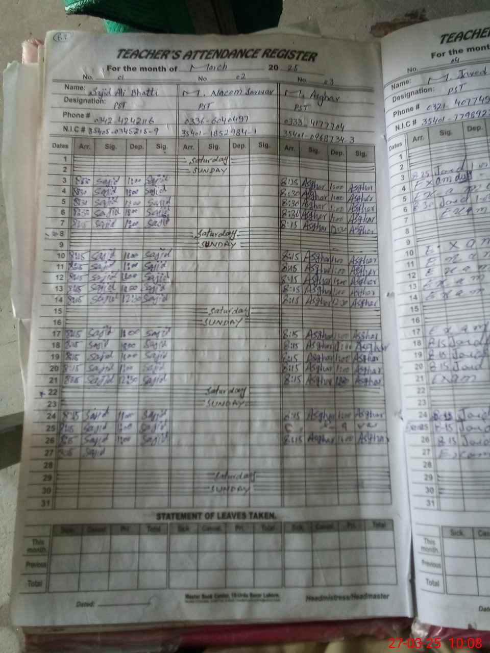 | Name: SA**** AL**** Designation: (School Headmaster's/Headmistress's) PST Phone/Cell Number: 03**** |