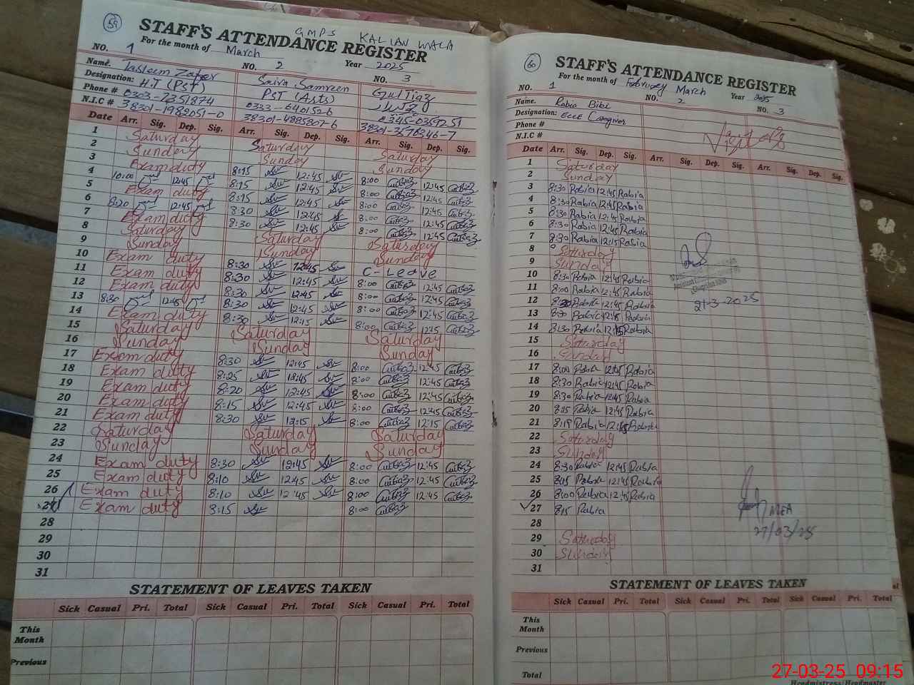 | 38**** | Ta**** Za**** | PST | Regular | 2 | 2 | 0 | 0 | 0 | 0 | 0 | 0 | 2 | Exam Duty |