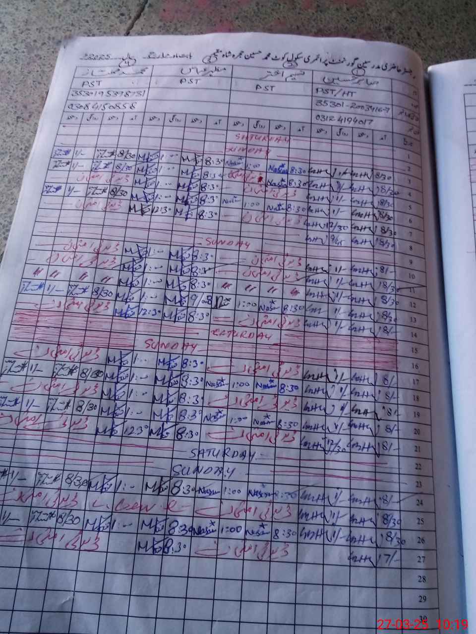 | 35**** | Na**** Ak**** | PST | Regular | 0 | 0 | 0 | 0 | 0 | 0 | 0 | 0 | 0 | Exam Duty |