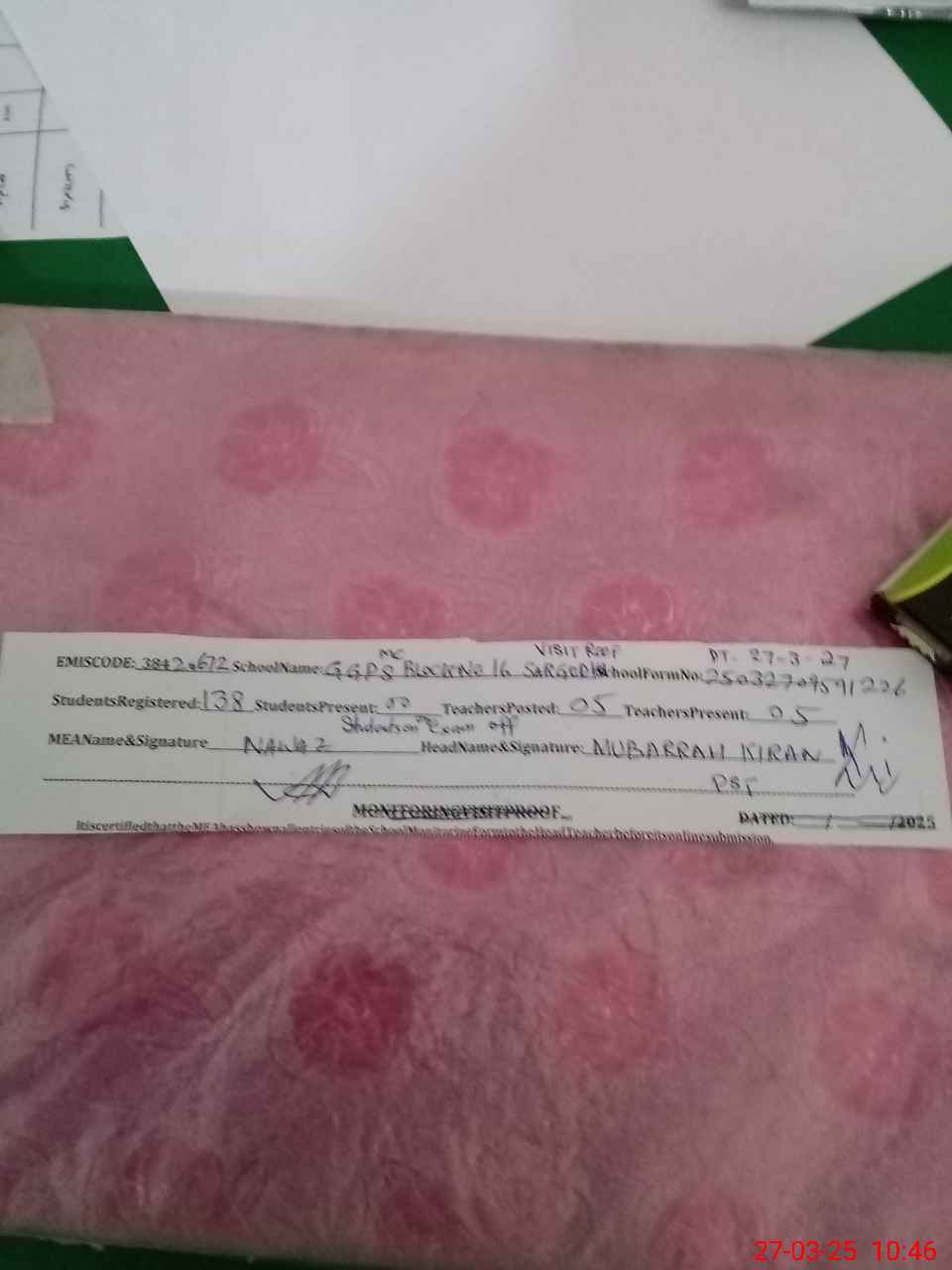 | EMIS Code: 38420672 | Name of School: GGPS MC BLOCK NO.16 SARGODHA | |||