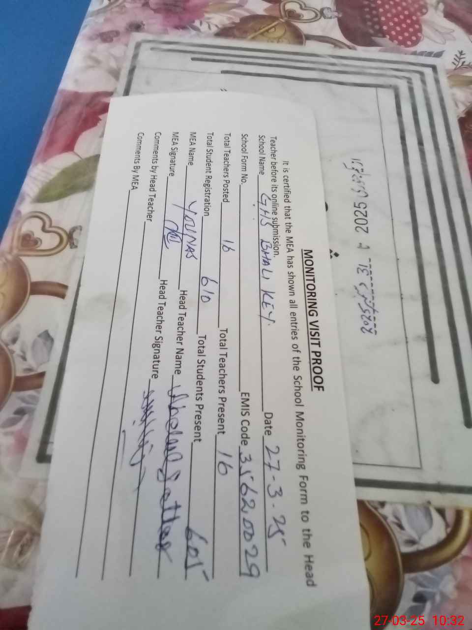 | EMIS Code: 35620029 | Name of School: GHS BHALIKAY | |||