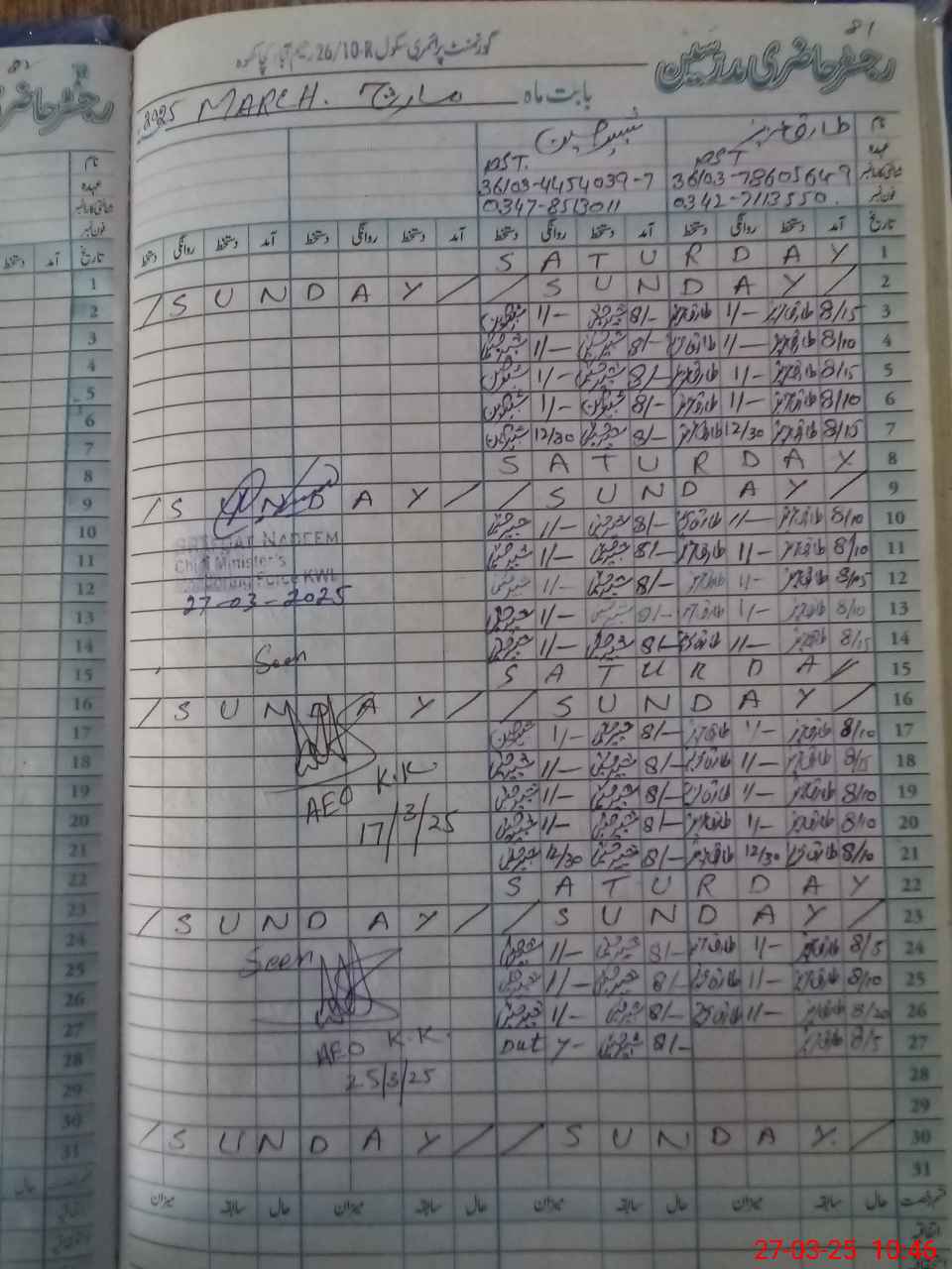 | Name: Ta**** Az**** Designation: (School Headmaster's/Headmistress's) PST Phone/Cell Number: 03**** |