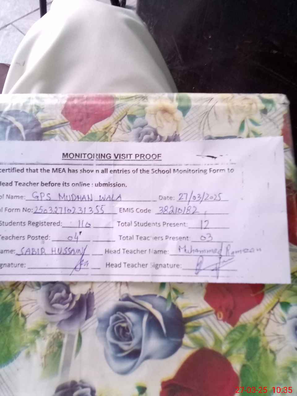 | EMIS Code: 38210182 | Name of School: GPS MUDHAN WALA | |||