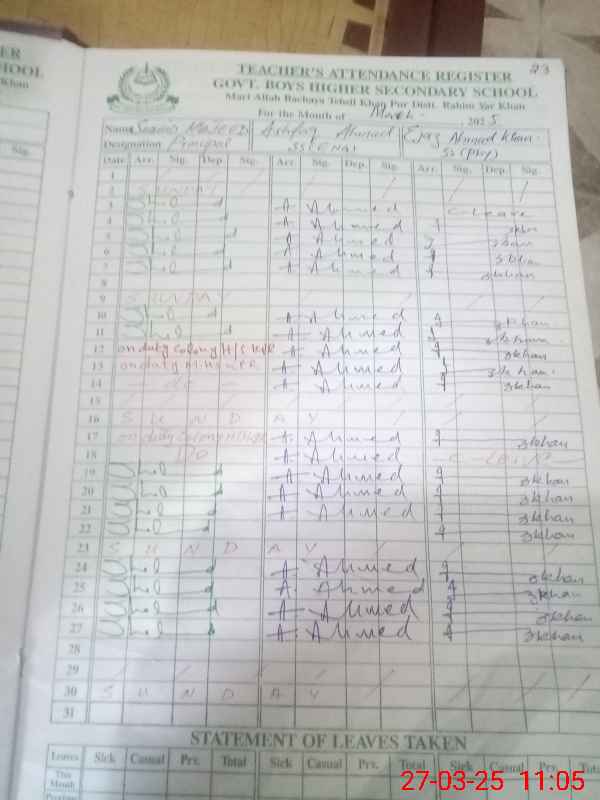 | Name: Sh**** Ma**** Designation: (School Headmaster's/Headmistress's) Principal Phone/Cell Number: 03**** |