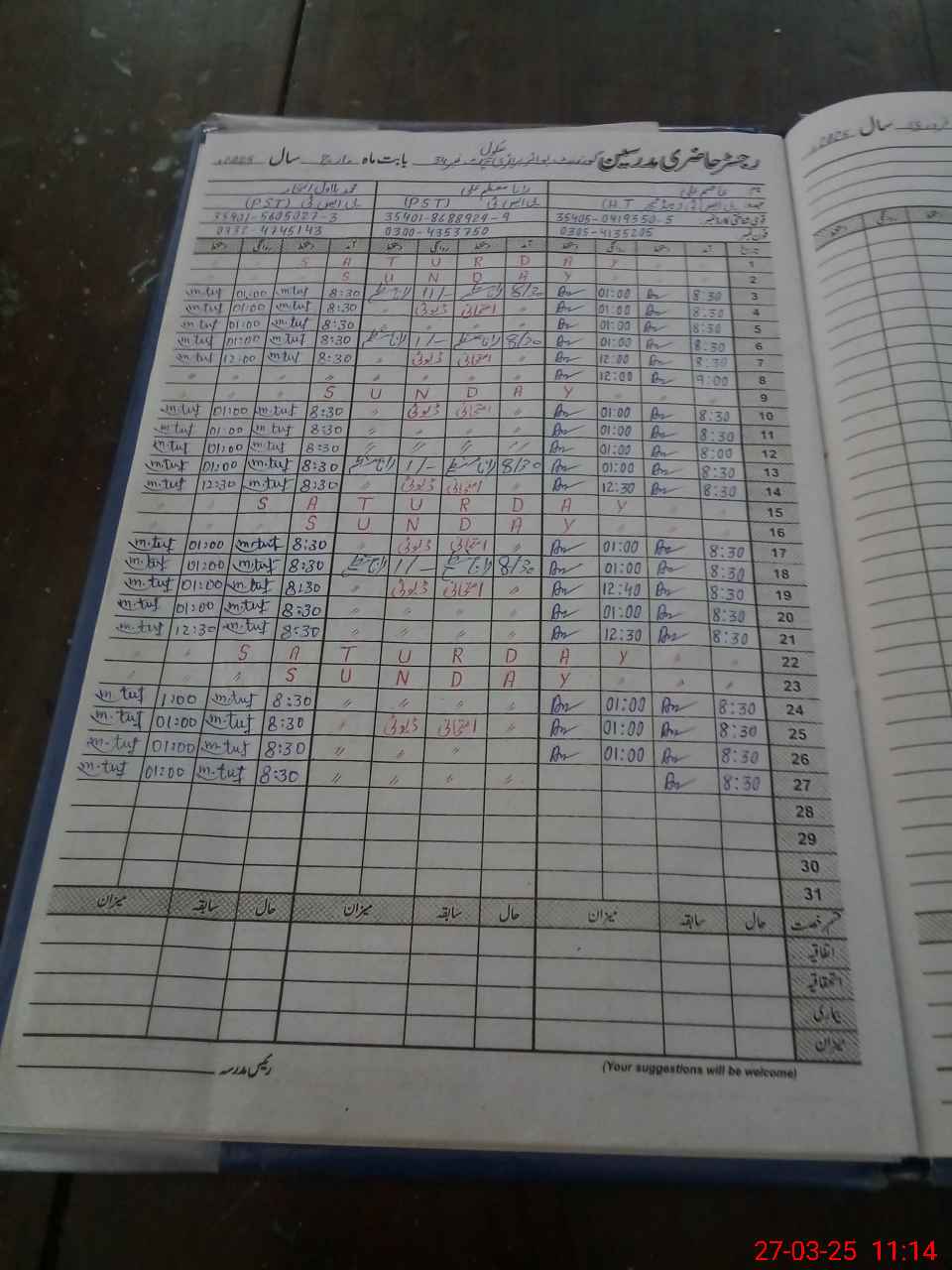 | 35**** | Ra**** Mu**** Al**** | PST | Regular | 0 | 0 | 0 | 0 | 0 | 0 | 0 | 0 | 0 | Exam Duty |