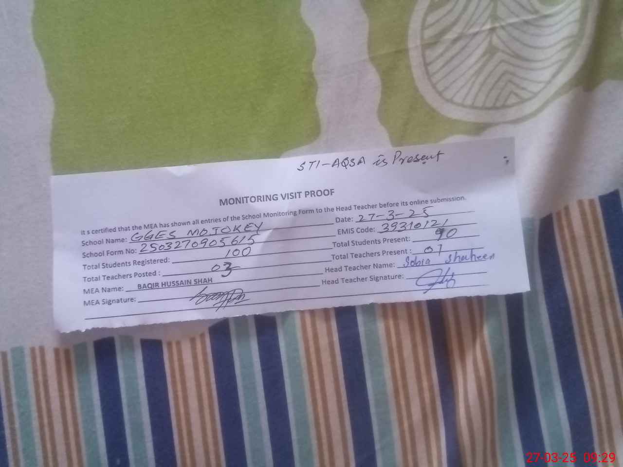 | EMIS Code: 39310121 | Name of School: GGES MOJOO KI | |||
