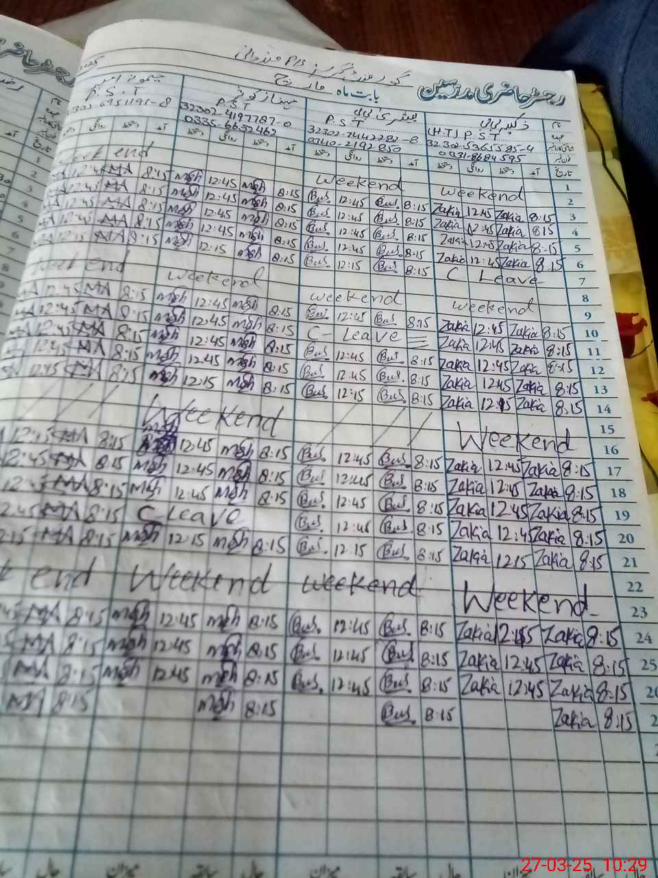 | CNIC | Full Name | Designation | R/C | Absence During Last Calender Month |