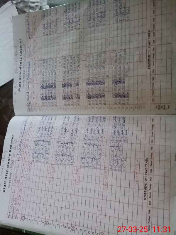 | CNIC | Full Name | Designation | R/C | Absence During Last Calender Month |