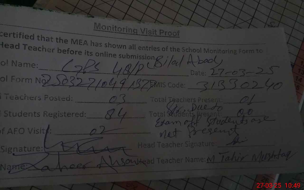 | EMIS Code: 31330240 | Name of School: GPS 48/P BILAL ABAD | |||