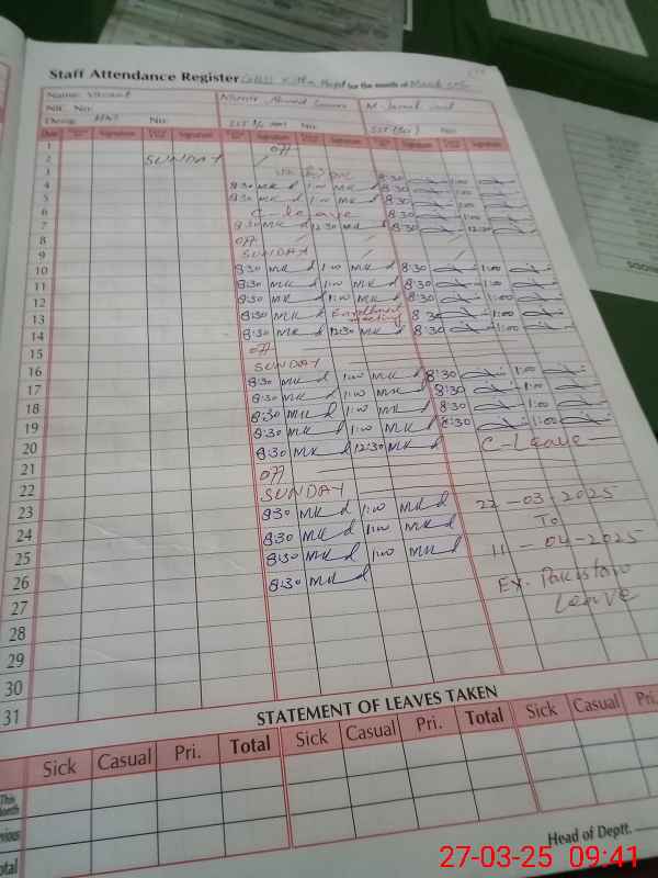 | 31**** | Mu**** Ak**** | 1 | 2 | 0 | 0 | 0 | 0 | 0 | 0 | 0 | 2 | Exam Duty | |