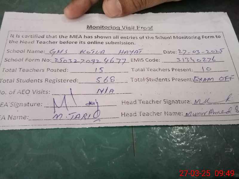 | EMIS Code: 31340276 | Name of School: GHS KOTLA HAYAT | |||