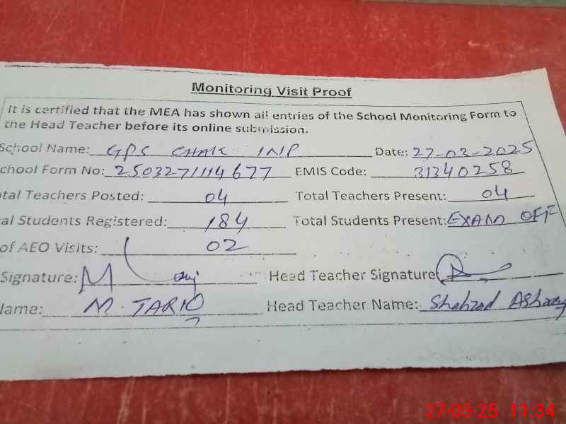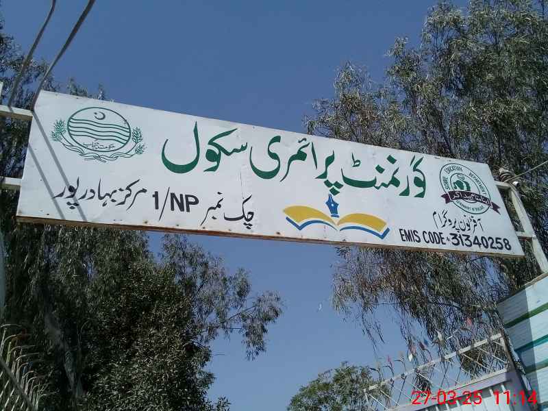 | EMIS Code: 31340258 | Name of School: GPS CHAK NO 1/NP | |||