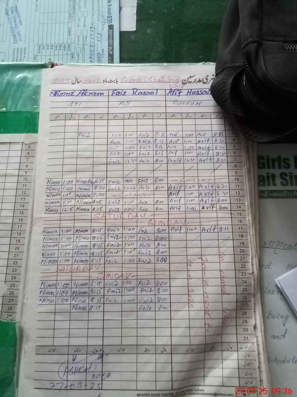 | CNIC | Full Name | Designation | R/C | Absence During Last Calender Month |
